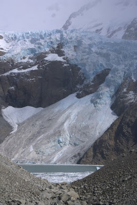 L’excursió és una caminada amb grampons per sobre el “Glaciar Torre” i un petita escalada en una paret de gel. La glacera està a unes 4 hores de distància així que en total l’excursió dura unes 12. L’endemà fa un dia espectacular. Per primer cop en 4 dies veiem el Fitz Roy per la finestra. Comencem a les 7 del matí i caminem unes tres hores fins al riu que neix de la glacera.